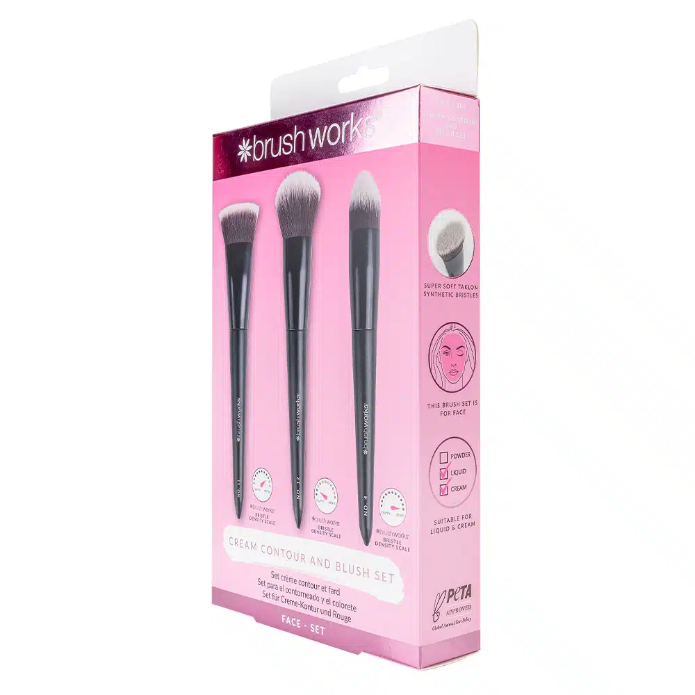 Le kit contour et blush Brushworks est idéal pour les débutants. Il simplifie votre routine maquillage et la rend plus fluide. Ce trio de pinceaux essentiels est parfait pour sculpter et définir vos traits en toute simplicité. Le kit comprend le pinceau contour plat n° 11, le pinceau blush n° 12 et le pinceau estompeur conique n° 4, conçus pour une application impeccable du contour et du blush. Grâce à leurs poils synthétiques en taklon ultra-doux, ces pinceaux permettent une application du maquillage douce et uniforme, tout en respectant la peau.