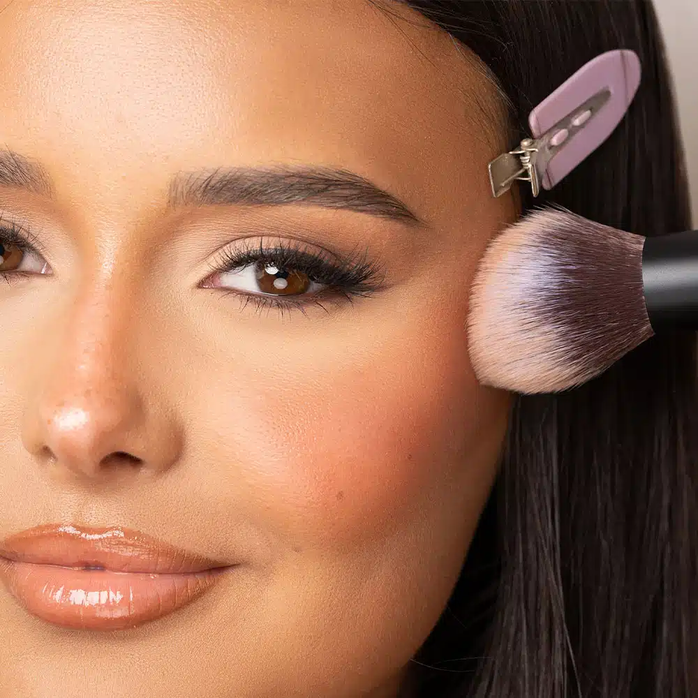 Appliquez légèrement votre poudre bronzante sur les zones naturellement exposées au soleil, comme les pommettes, le front et l’arête du nez, pour un effet hâlé naturel.