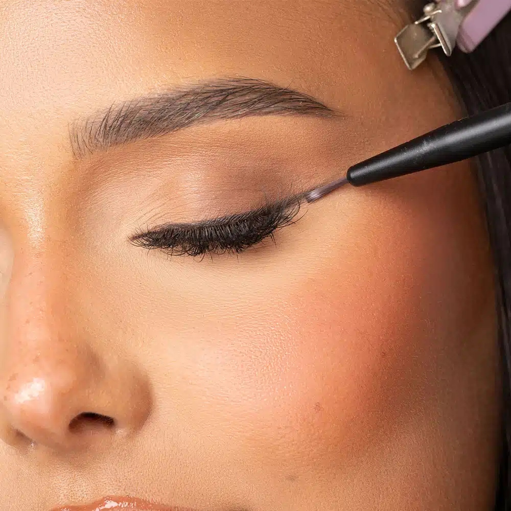 Trempez le pinceau dans l’eyeliner de votre choix et appliquez-le le long de la ligne des cils, en partant du coin interne et en allant vers l’extérieur pour créer un regard félin intense.