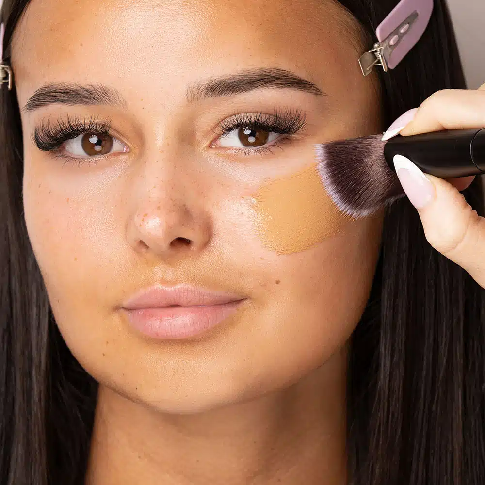 • En effectuant des mouvements circulaires, estompez le fond de teint sur votre peau et veillez à bien l’estomper également sur le cou pour un fini impeccable et naturel.