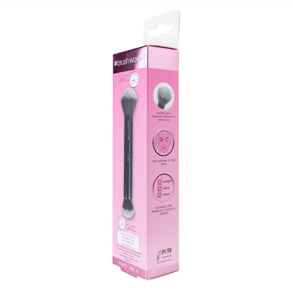 Découvrez le pinceau poudre et estompeur double embout Brushworks n° 6 : l’outil idéal pour sublimer votre maquillage. Conçu avec expertise, ce pinceau est ultra-pratique grâce à son design double embout qui réunit un pinceau poudre et un pinceau estompeur. Cette combinaison vous permet d’appliquer la poudre et d’estomper facilement vos produits crème, liquides et poudre préférés pour une application impeccable et un estompage parfait.